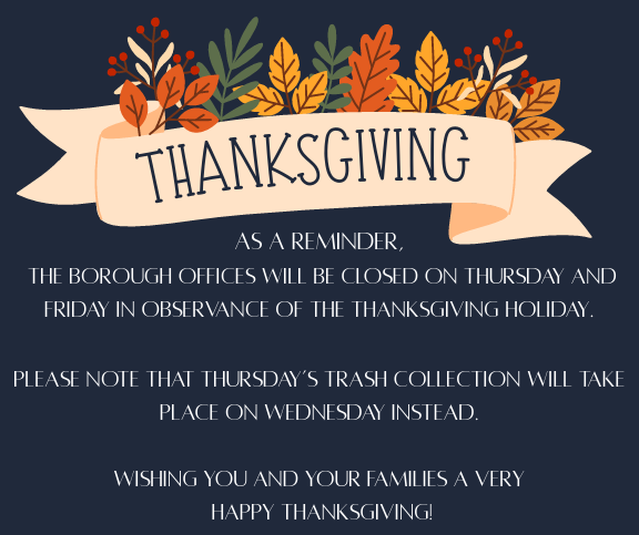 The Borough of Berlin announces the sale of 2024 and prior year delinquent taxes, water/sewer and other municipal charges through an on-line auction on November 14, 2025 8:00AM. For a listing of all parcels, delinquencies and costs, along with bidding instructions please visit: https://berlinborough.newjerseytaxsale.com/ *Information can be viewed free of charge. The week of 10/19/25 […]